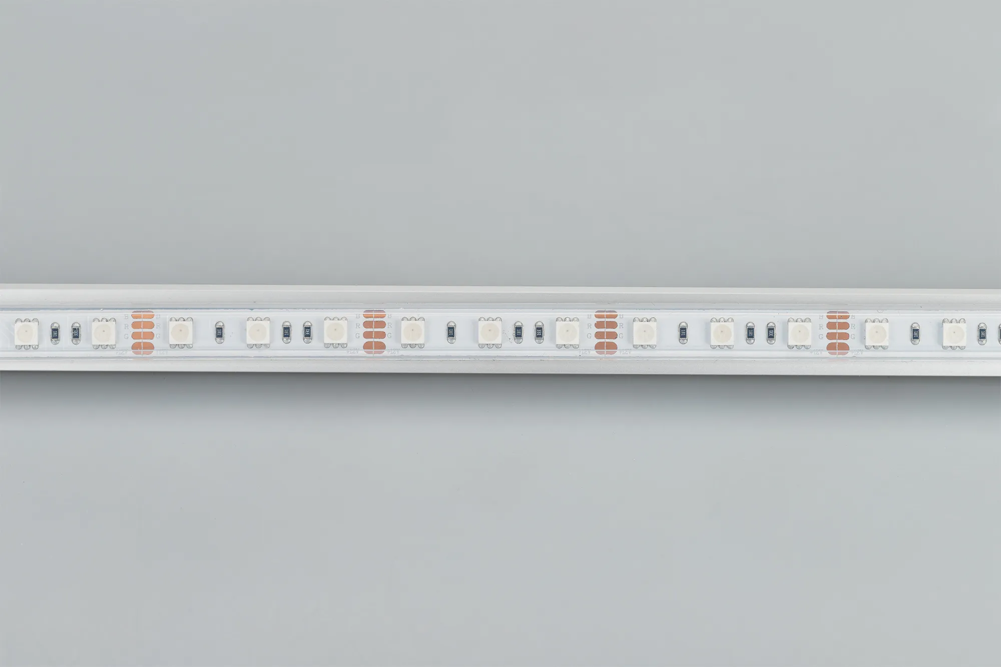Герметичная лента IP66 (в силиконовой трубке), светодиоды smd 5060, 60шт/м (300шт на 5м), белая плата 10мм, скотч 3М. Цвет Мультицвет R/G/B. Питание 12V, мощность 14.4 Вт/м (72 Вт на 5м), угол 120°. Размеры 5000х13x5мм. Мин.отрезок 50мм, 3 светодиода. Цена за 1м.