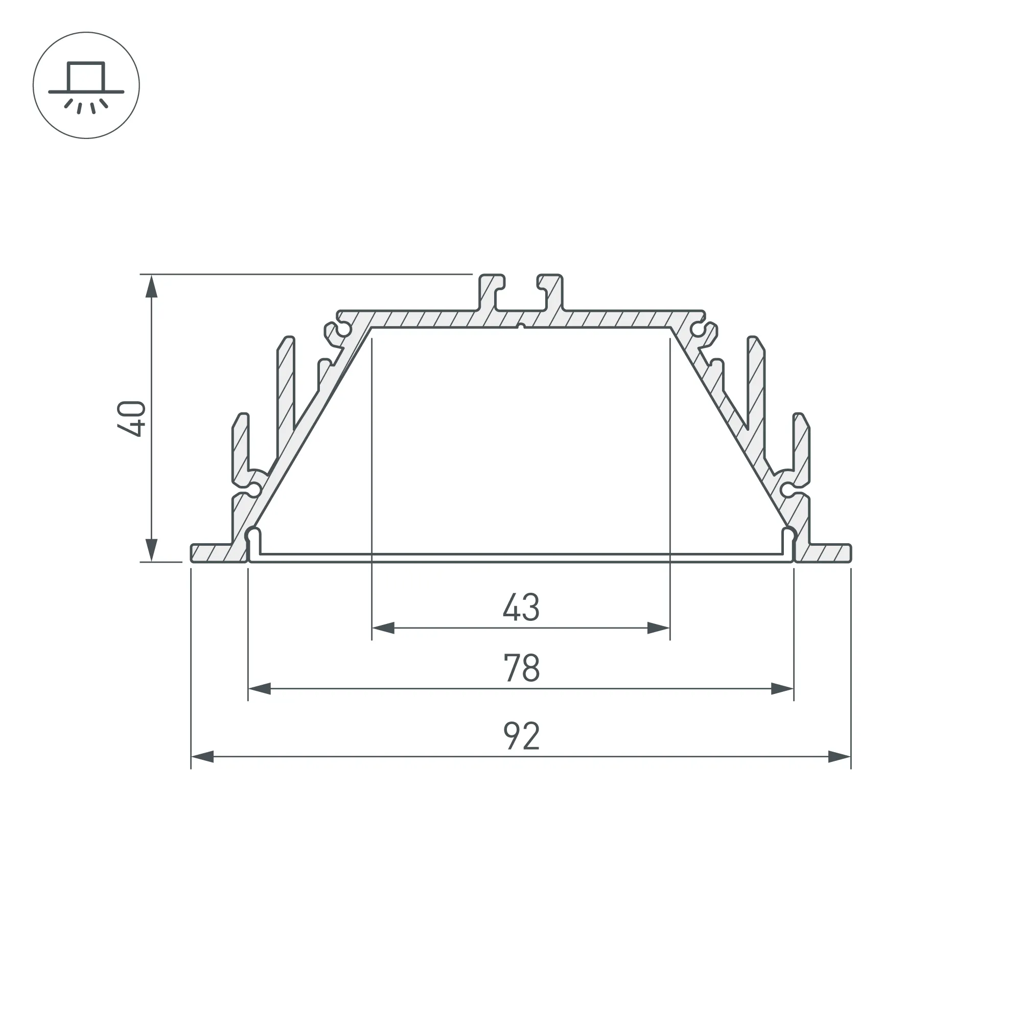 Комплект с экраном. Алюминиевый анодированный профиль для светодиодных лент и линеек. Габаритные размеры (L×W×H): 2000x92x40 мм. Ширина площадки для ленты 42,6 мм. Аксессуары приобретаются отдельно. Цена за комплект.
