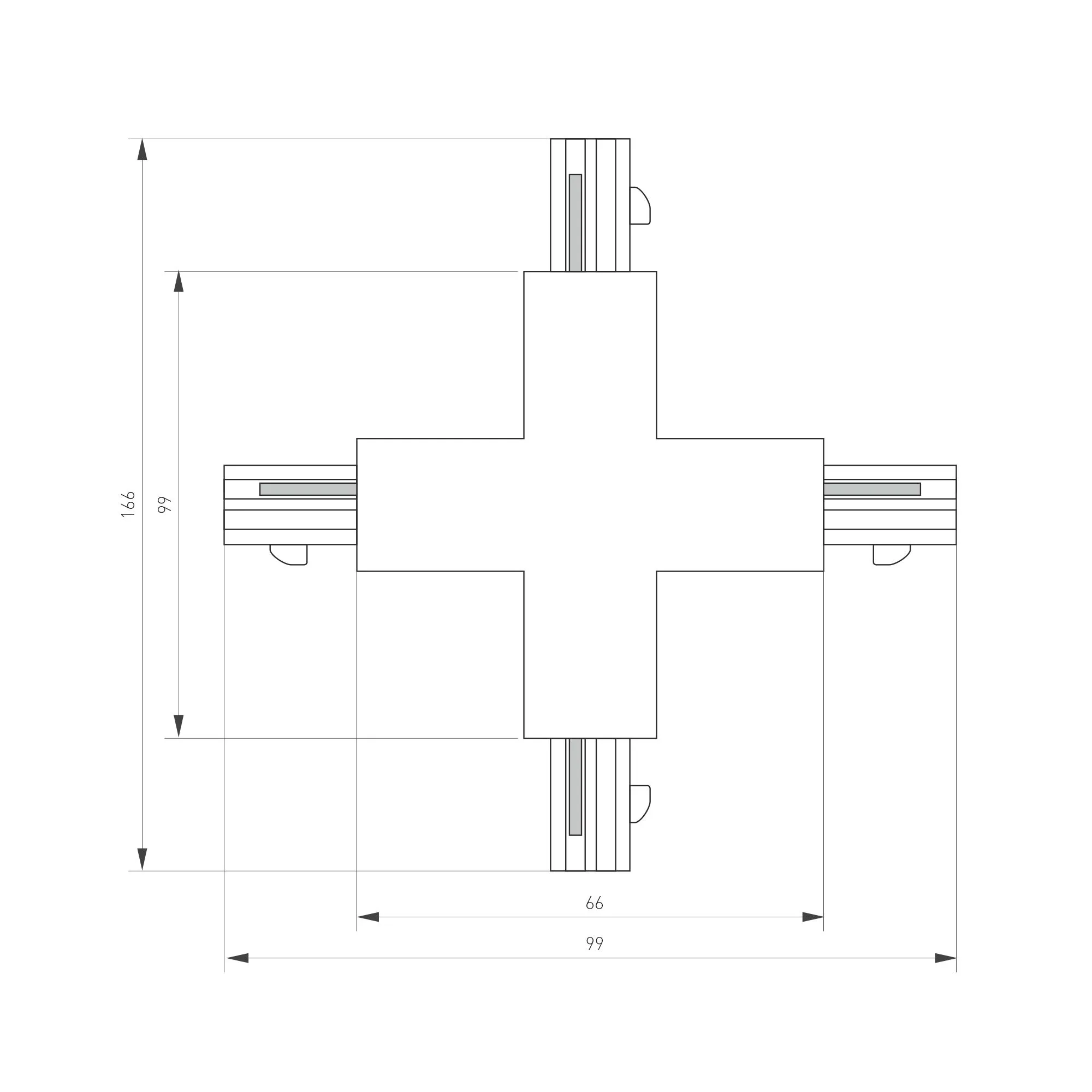 X-образный коннектор для треков 4TR. Цвет черный. 166х166х33 мм с контактами, 99х99х33 мм без контактов.