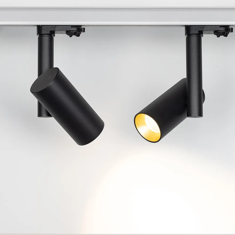 Трековый светильник 8Вт, черный круглый корпус, цветная вставка, металл.