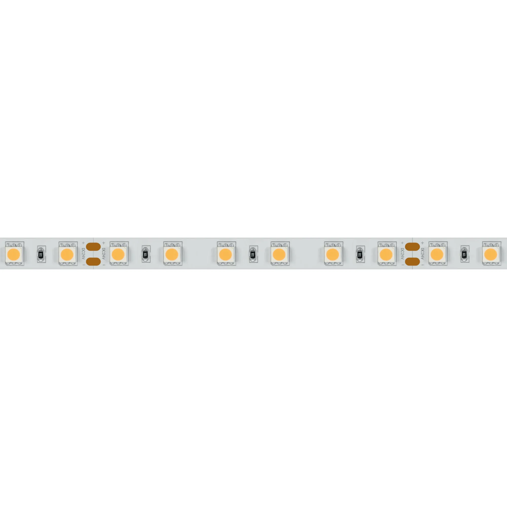 Гибкая лента LUX, светодиоды smd 5060, 60шт/м (300шт на 5м), белая плата 10мм, скотч 3М. Цвет ТЁПЛЫЙ 2900-3100K. Питание 24V, мощность 14.4 Вт/м (72 Вт на 5м), угол 120°, цветопередача CRI>85. Размеры 5000х10x2.2мм. Мин.отрезок 100мм, 6 шт светодиодов. Пакет 5м. Цена за 1м.