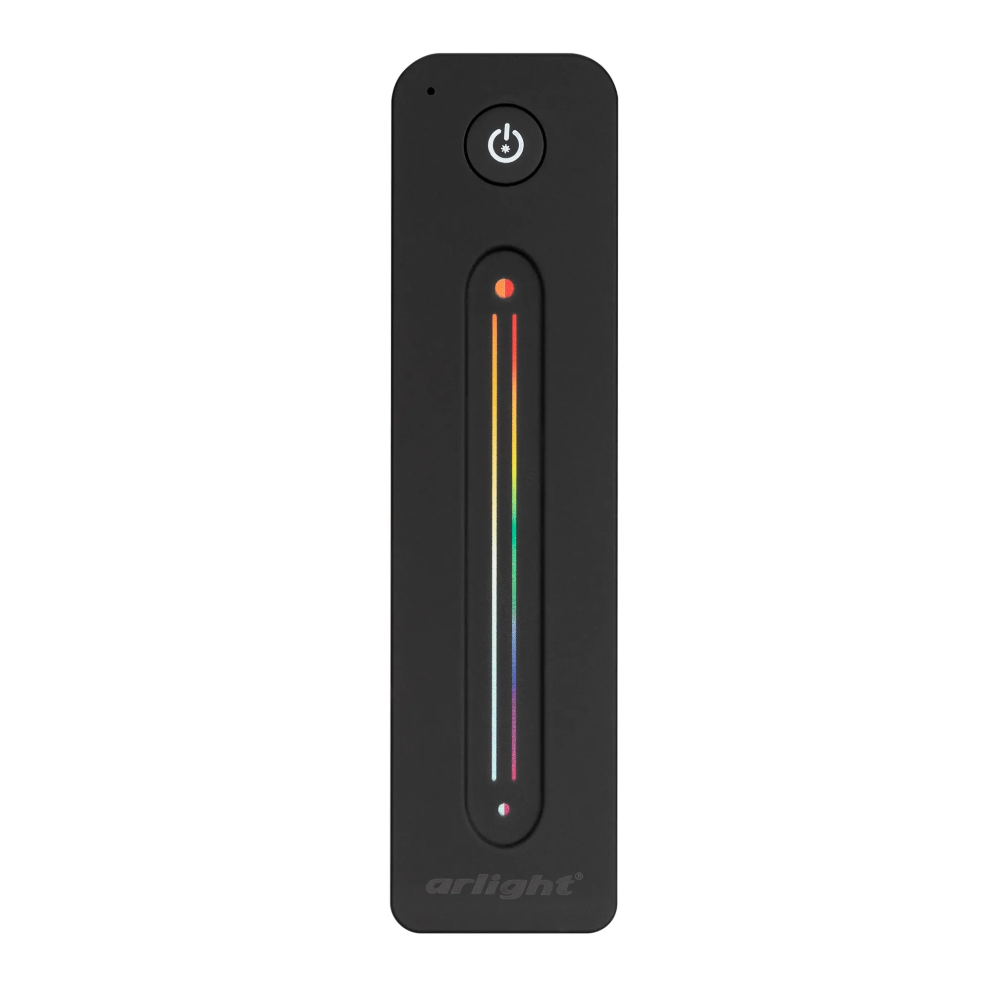 Пульт-слайдер 2.4 ГГц черного цвета для управления RGB+MIX источниками света. 1 зона управления, память пользовательских настроек. Питание 3VDC (CR2032). Габариты 139x36x11 мм. Изготовлен из пластика с покрытием Soft Touch. Совместим с контроллерами и панелями серии SMART (поставляются отдельно).