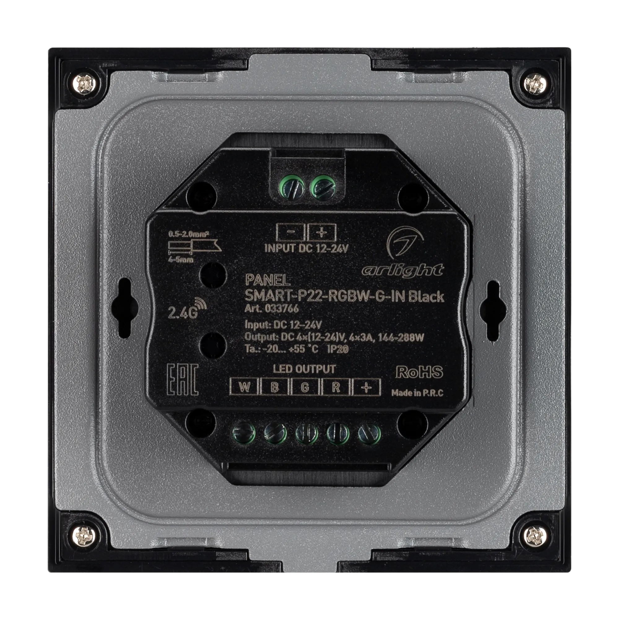 Панель SMART-P22-RGBW-G-IN Black (12-24V, 4x3A, Sens, 2.4G) (Arlight, IP20 Пластик, 5 лет)