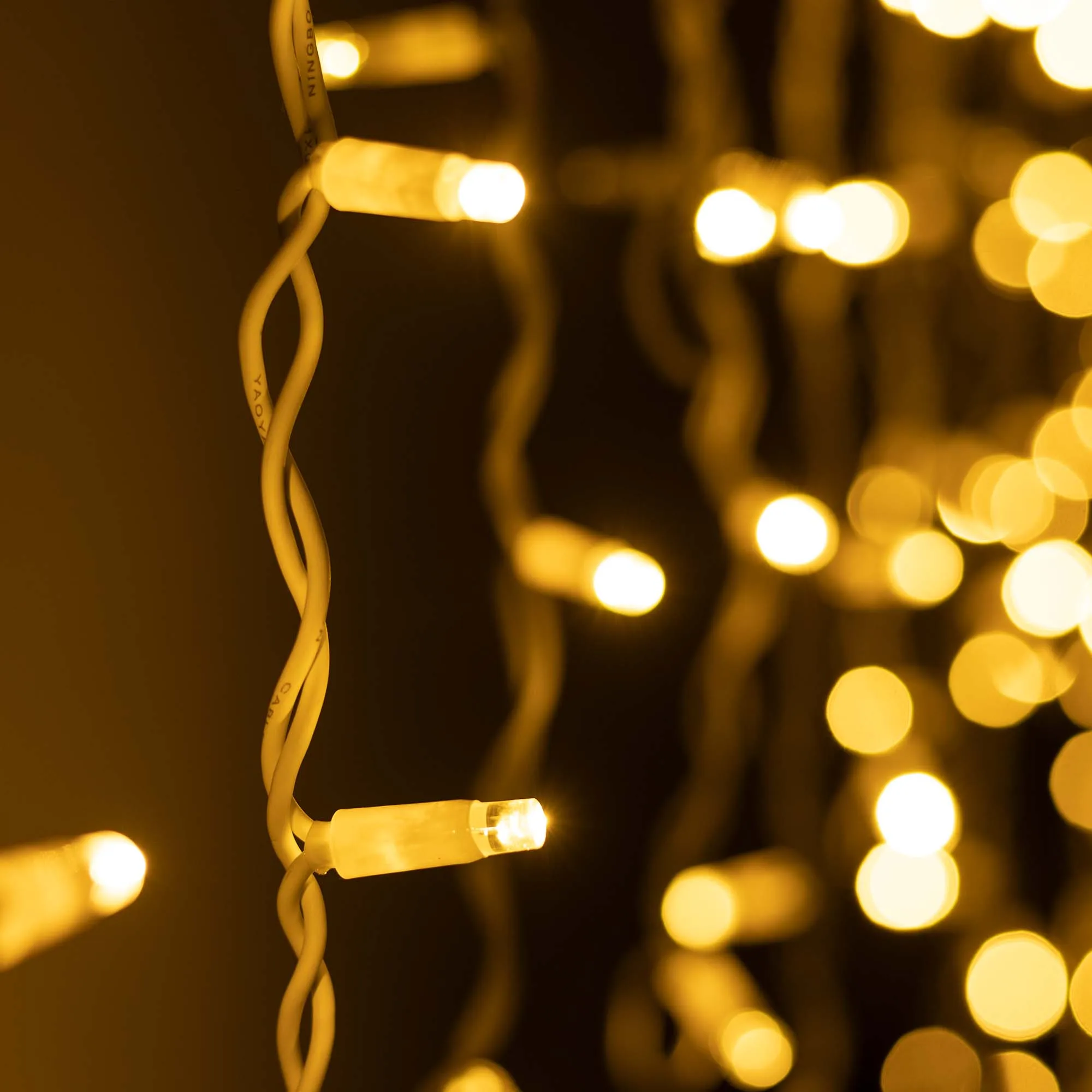 Светодиодная бахрома Classic. Размер 4000 мм (длина 4000 мм, по длине 32 нити высотой 200/600 мм). Количество светодиодов 128 шт размером 7 мм. Основной цвет свечения ТЕПЛЫЙ БЕЛЫЙ (3000 К), эффект мерцания редких точек ТЕПЛЫЙ БЕЛЫЙ (3000К) с мягким световым рисунком (выпуклая молочно-белая линза), соотношение светодиодов: 106 теплых постоянного свечения / 22 белых с мерцанием. Эффект частого мерцания. Провод белый, каучук. Питание 230 В, Мощность 6 Вт, защита IP65, применение на улице под навесом. Аксессуары для подключения приобретаются отдельно.