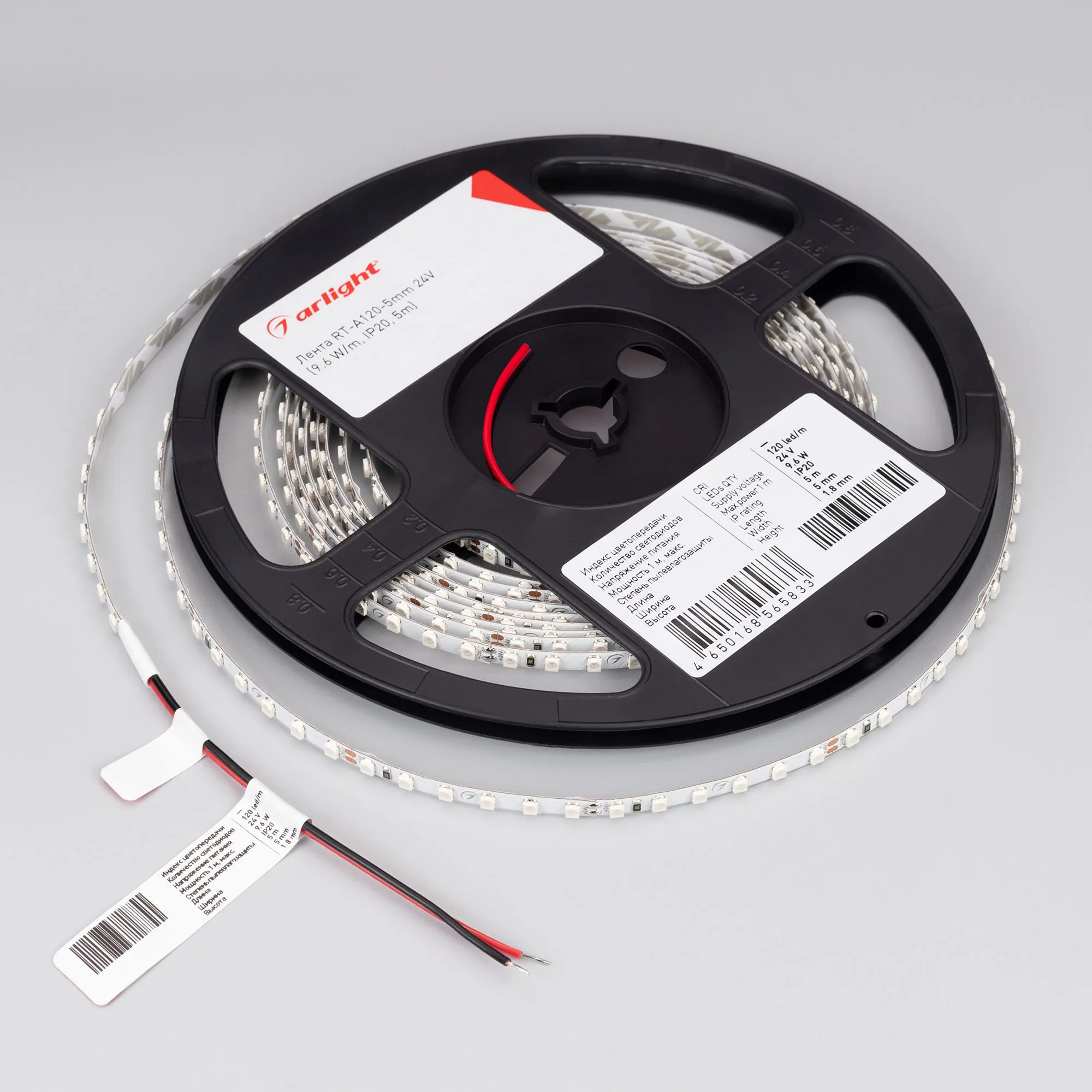 В магазине Arled Market Вы можете купить "Лента светодиодная RT-A120-5mm 24V Yellow (9.6 W/m, IP20, 2835, 5m) (Arlight, узкая)"