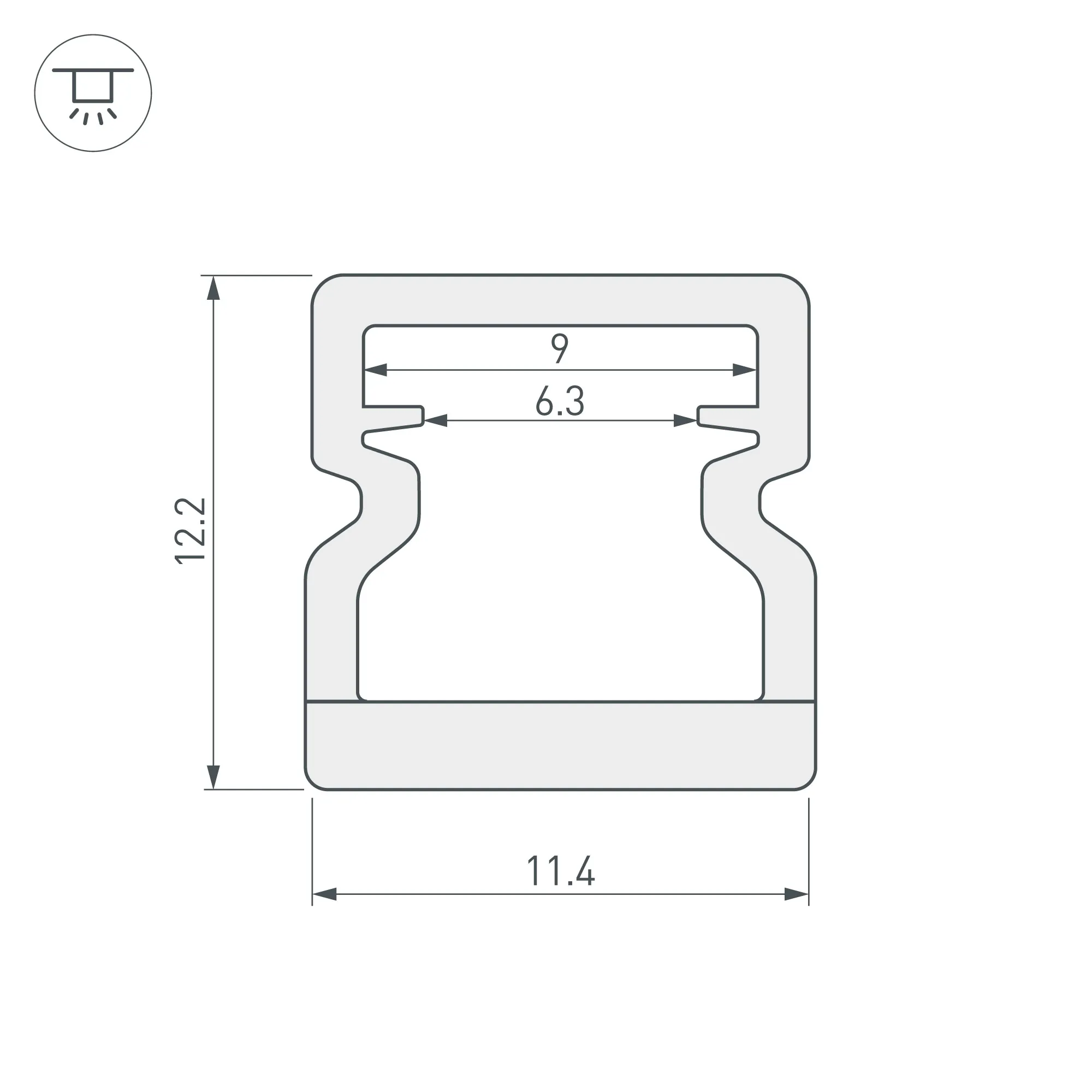 Цельнолитой пластиковый профиль со встроенным матовым экраном. Материал - PC. Для лент и линеек шириной до 8 мм. Размер 2000*11.4*12.2мм. Класс пылевлагозащиты – IP65 (при соблюдении технологии герметизации). Цена за 1м. Для лент и линеек максимальной мощностью 9,4 ВТ/м.