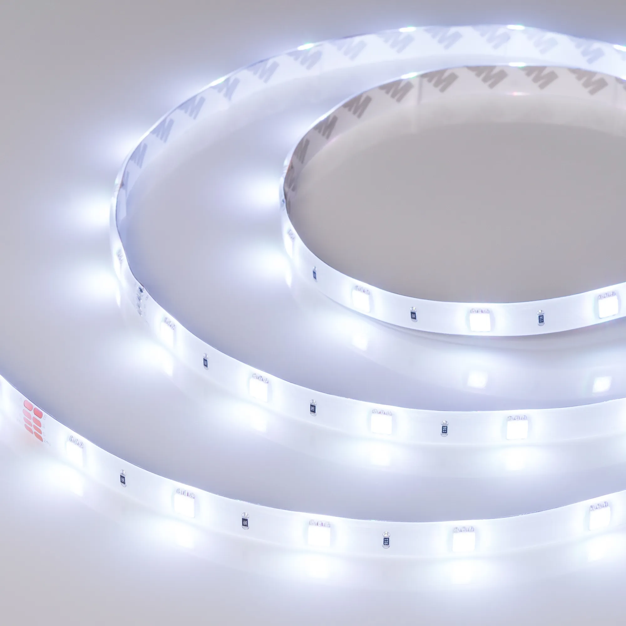 Мультицветная светодиодная герметичная лента RTW серии B30, IP65 (SE - силиконовый верхний слой). Светодиоды SMD 5060, 30 шт/м, белая плата шириной 10 мм, скотч 3M. Цвет RGB, угол 120°. Питание 24 В, мощность 7.2 Вт/м (36 Вт на 5 м). Размеры 5000x10x2.7 мм. Мин. отрезок 166.67 мм, 5 светодиодов. Цена за 1 м.