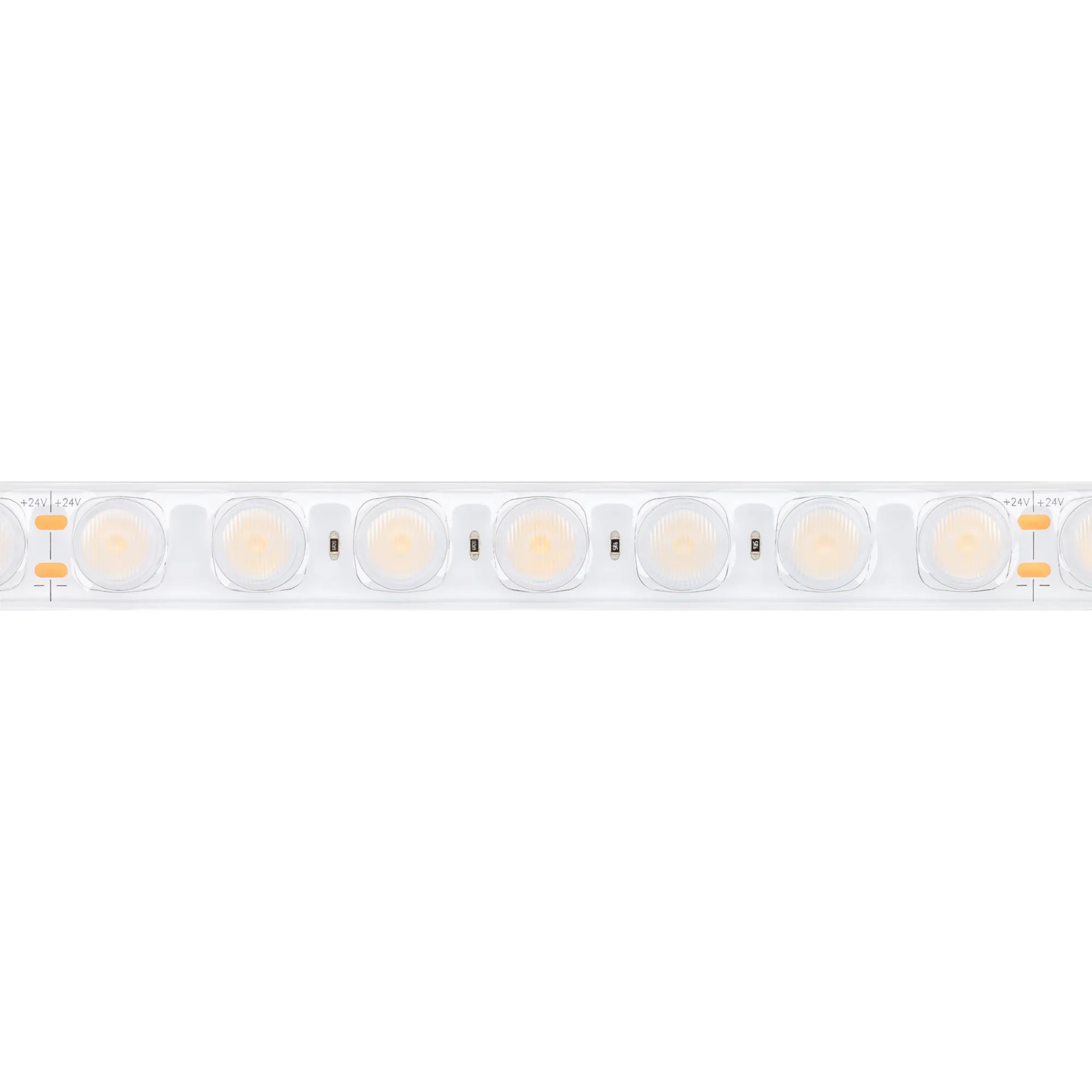 Светодиодная герметичная лента FLT серии A42 с направленной линзой 30°, IP67. Светодиоды SMD 2835, 42 шт/м, белая плата шириной 20 мм, скотч 3M. Цвет ТЕПЛЫЙ 3000K, индекс цветопередачи CRI>80. Питание 24 В, мощность 21 Вт/м (105 на 5 м). Размеры 5000x23x11.5 мм. Мин. отрезок 167 мм, 7 светодиодов. Цена за 1 м.