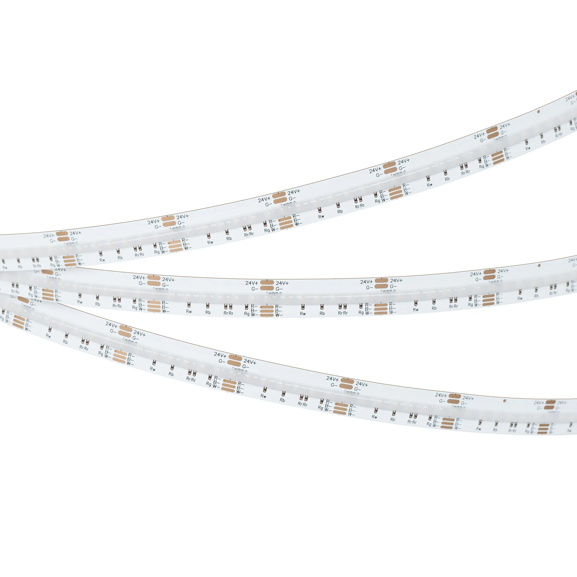 Светодиодная лента сплошного свечения COB серии X840. Светодиоды CSP, 840 шт/м, белая плата шириной 12 мм, скотч 3M. Цвет RGB + ТЕПЛЫЙ 3000K, индекс цветопередачи CRI>90, угол 160° Питание 24 В, мощность 17.2 Вт/м (86 Вт на 5 м). Размеры 5000x12x1.9мм. Мин. отрезок 33.33 мм. Цена за 1 м. Обязательна установка на профиль.