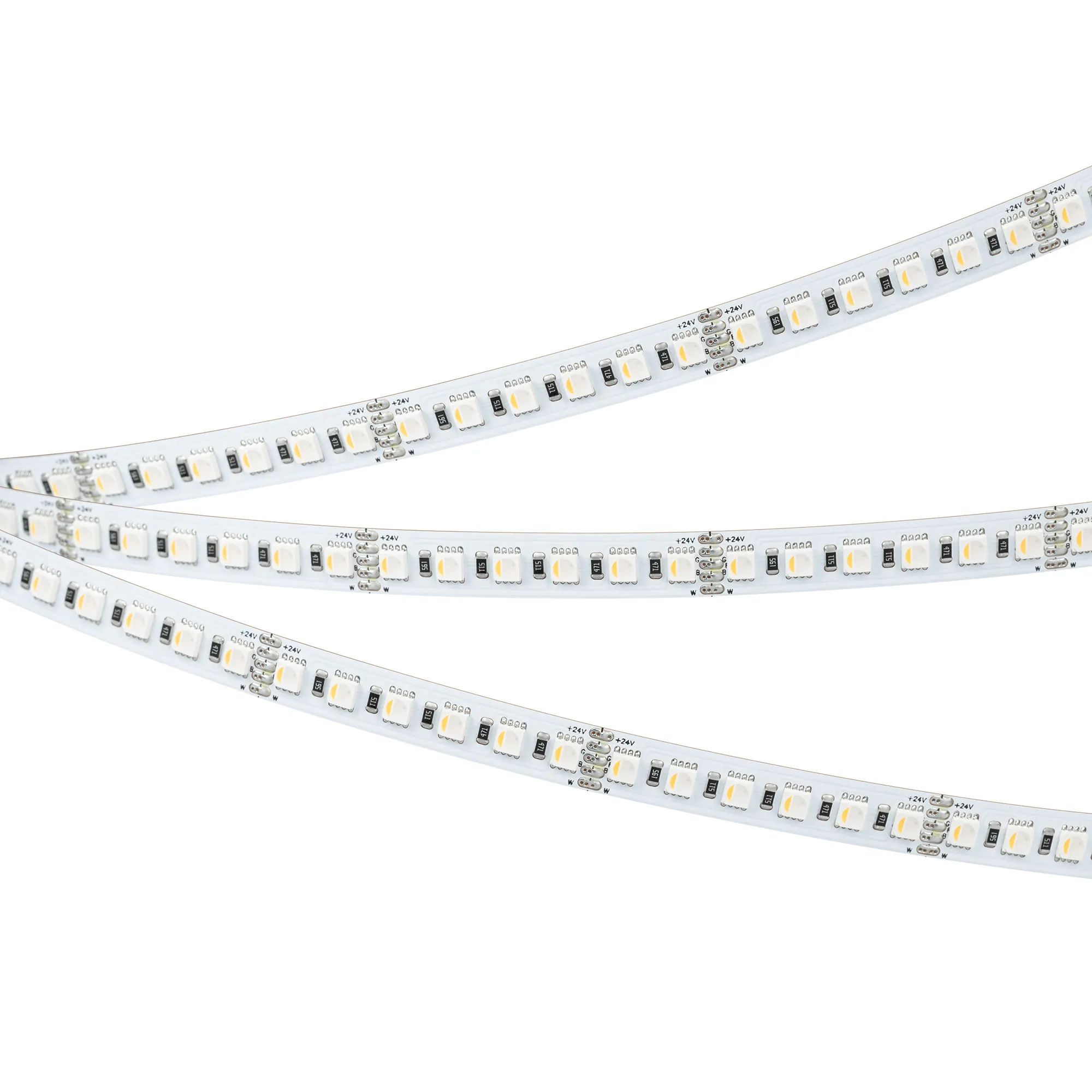 Светодиодная мультицветная лента RT серии H120. Светодиоды SMD 4040, 120 шт/м, белая плата шириной 10 мм, скотч 3M. Цвет RGB + ДНЕВНОЙ 4000K, индекс цветопередачи CRI>90, угол 120°. Питание 24 В, мощность 25 Вт/м (125 Вт на 5 м). Размеры 5000x10x2.1 мм, мин. отрезок 50 мм, 6 светодиодов. Цена за 1 м.