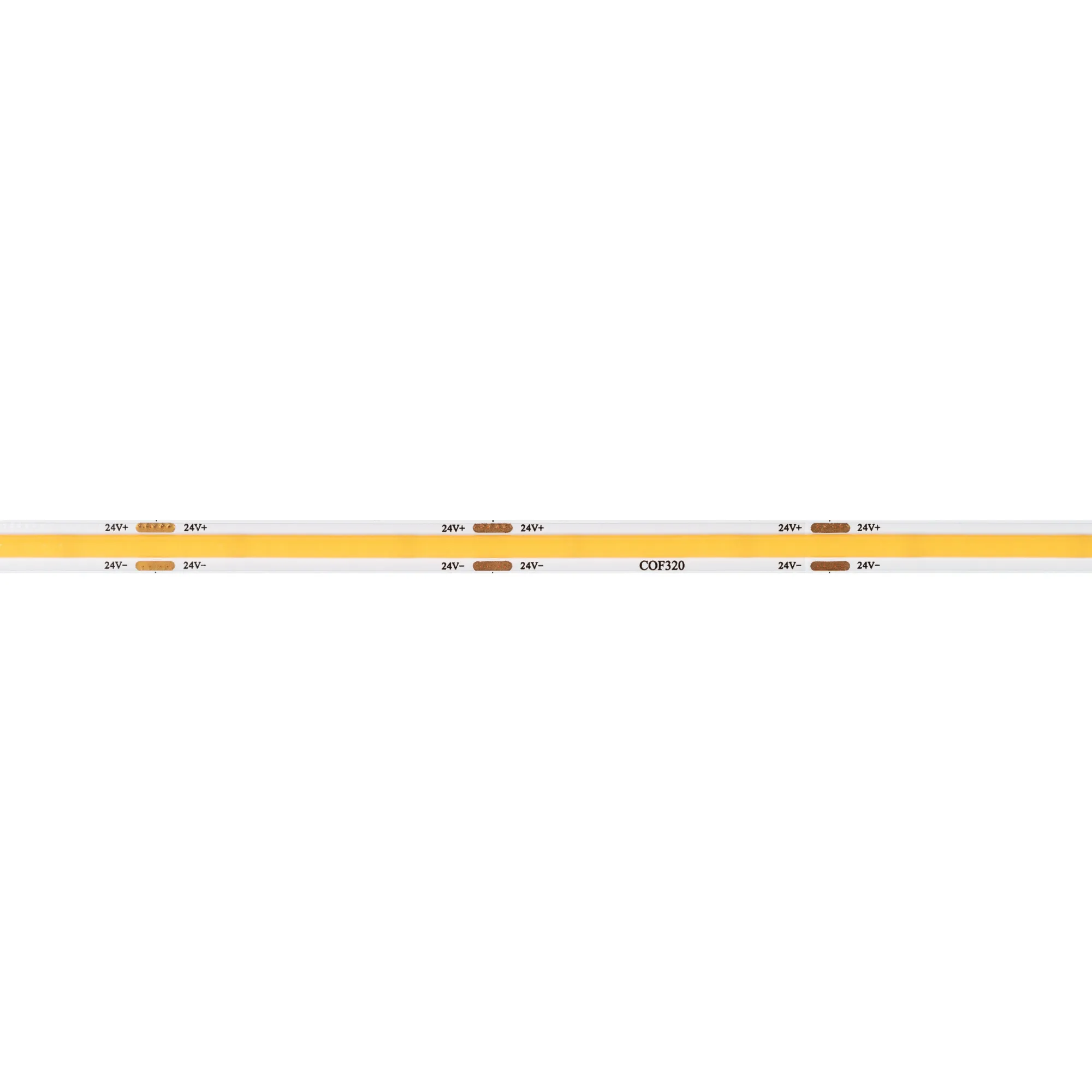 Светодиодная лента сплошного свечения COB серии X320. Светодиоды CSP, 320 шт/м, белая плата шириной 8 мм, скотч 3M. Цвет ТЕПЛЫЙ 3500K, индекс цветопередачи CRI>90, угол 175°. Питание 24 В, мощность 8 Вт/м (40 Вт на 5 м). Размеры 5000х8х2 мм. Мин. отрезок 50 мм. Цена за 1 м.