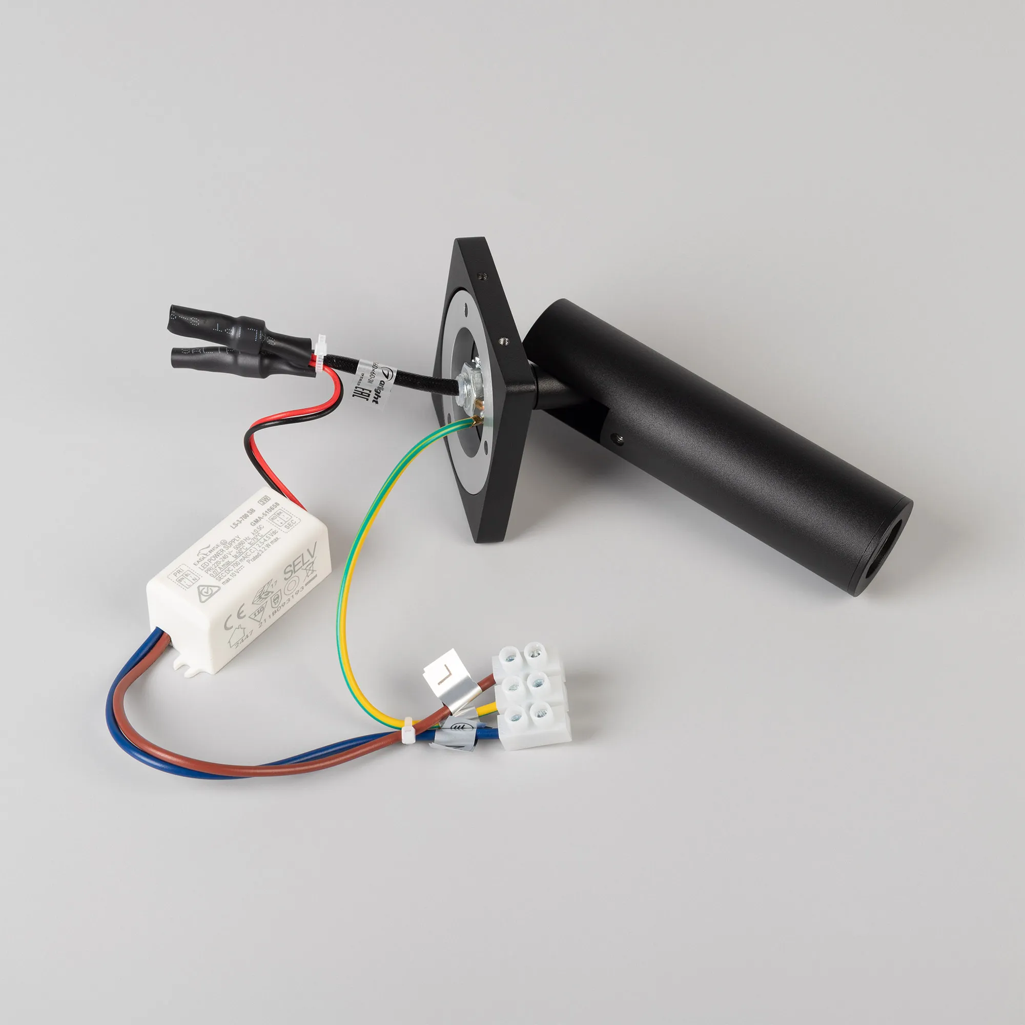 Встраиваемый настенный светильник 3 Вт, черный алюминиевый корпус без кнопки включения. Цвет ТЕПЛЫЙ 2700K, св.поток 174 лм, CRI(Ra)>90, угол 20°. Размер Основание 60x60х8 мм, Светоизлучатель Ø30×110 мм. IP20. Питание AC220-240V, 3 Вт, драйвер 2,5 - 4,5 В, 700 мА., пульсация < 1%