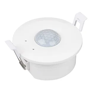 PIR-датчик движения, совмещенный с датчиком освещенности. Высота установки не более 5 м, максимальный диаметр зоны срабатывания 10 м. Угол обнаружения 360°. Настройки: время задержки (10 с - 30 мин), время отключения (0 c – 30 мин), освещенность (10 - 200 люкс). Выход: 1 канал 0/1-10V, радиоканал 2.4G (для управления диммерами серии SMART), релейный выход 100-240VAC с максимальный током 4А. Габариты (DxH) - 95x51 мм, диаметр врезного отверстия - 86 мм.