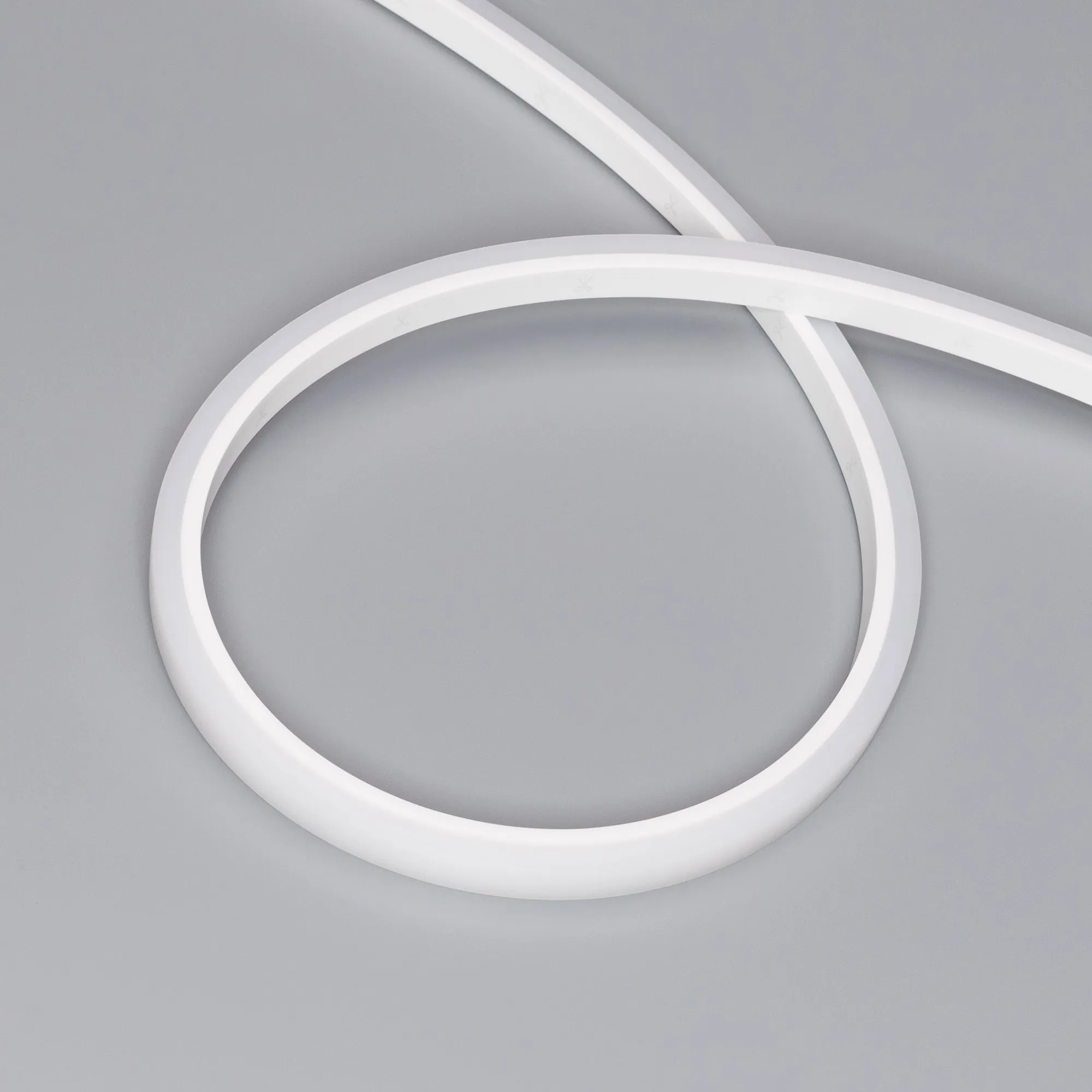 Гибкая герметичная лента (неон серии WAVE), сечение 10×10 мм. Светодиоды SMD2835 144 шт/м. Цвет свечения ТЕПЛЫЙ БЕЛЫЙ (2700 K), индекс цветопередачи CRI>90, световой поток 320 лм/м, угол излучения 170°. Мощность 5 Вт/м, питание 24 В. Оболочка из Полиуретана (PU). Класс пылевлагозащиты IP68. Размеры 1000×10×10 мм. Не подлежит резке. Вертикальный изгиб TOP, минимальный радиус изгиба 75 мм. Катушка 1 м. Цена за 1 м. Гарантия 3 года.