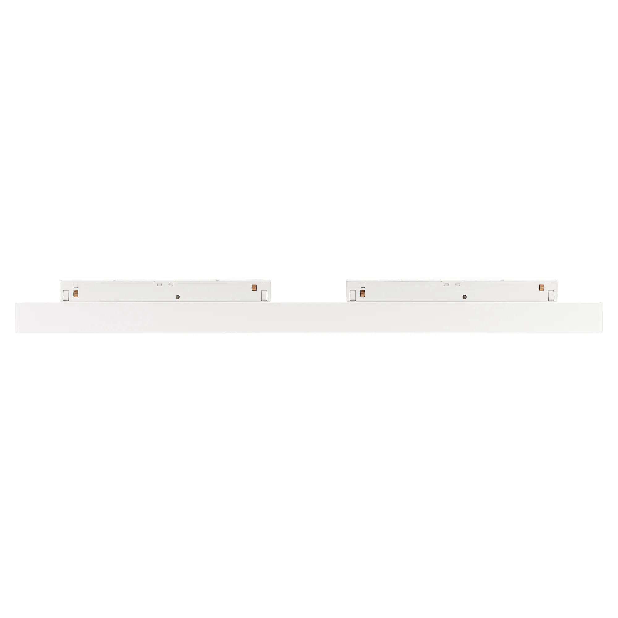 Светильник для магнитных треков MAG-ORIENT шириной 26 мм. Мощность 16 Вт, св. поток 1280 лм, 80 лм/Вт, теплый 2700 K, CRI>90, угол 100°, напряжение питания 48 В. Белый прямоугольный корпус из металл, экран поликарбонат, степень защиты IP20. Размер: длина 462 мм, ширина 22 мм, высота 42 мм. Монтаж на трек MAG-ORIENT. Пульсация <1%.