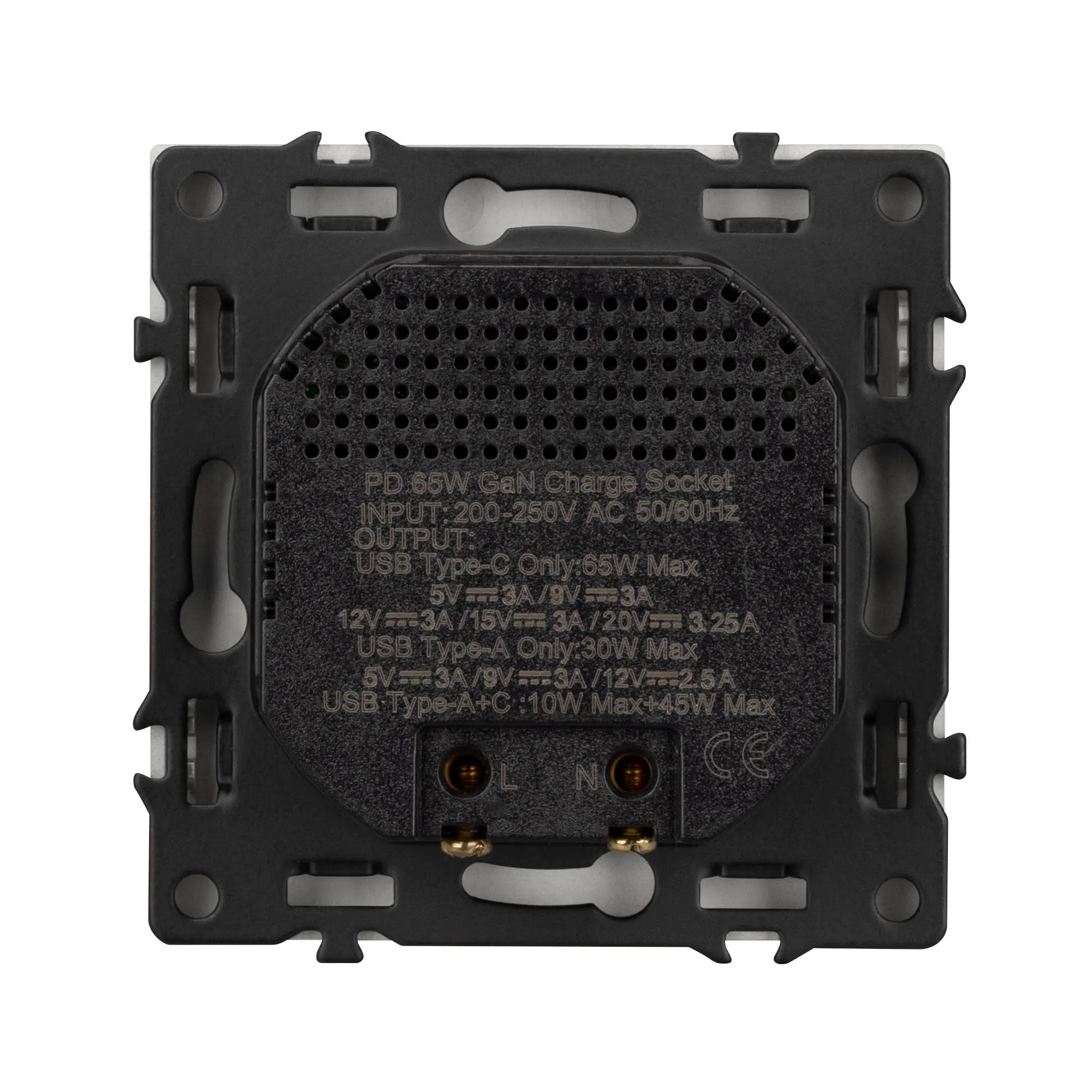 Механизм розетки с быстрой USB зарядкой на 2 порта. Цвет - кашемир, с Soft-Touch поверхностью. Без фронтальной рамки. Уровень пылевлагозащиты IP20. Тип подключаемого разъема - USB Type A + Type C. Устанавливается в стандартный подрозетник круглого сечения диаметром 60мм.
