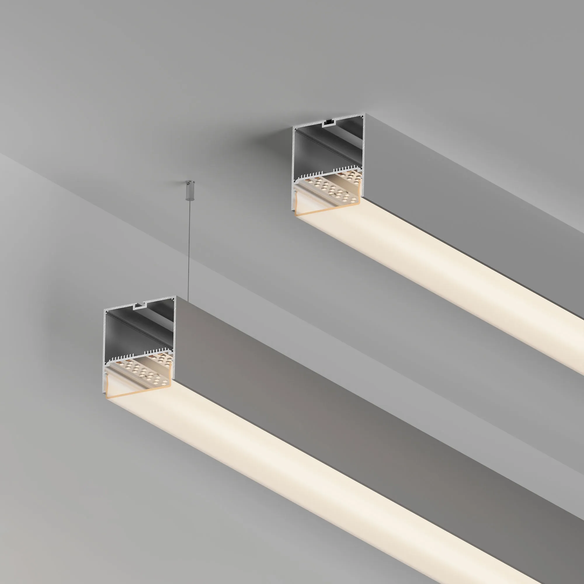 Алюминиевый анодированный профиль для светодиодных лент и линеек. Габаритные размеры (L×W×H): 2000x74x77 мм. Ширина площадки для ленты 60 мм. Отсек для БП 70х40мм. Экраны, заглушки и другие аксессуары приобретаются отдельно. Цена за 1 метр.